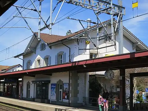 Hedingen is a railway station in the Swiss canton of Zurich, situated in the municipality of Hedingen.[2] The station is located on the Zurich to Zug via Affoltern am Albis railway line,[3] within fare zone 155 of the Zürcher Verkehrsverbund (ZVV).[4]