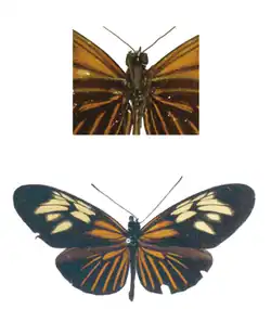 - ^ a b c Rosser, Neil; Freitas, André V. L.; Huertas, Blanca; Joron, Mathieu; Lamas, Gerardo; Mérot, Claire; Simpson, Fraser; Willmott, Keith R.; Mallet, James; Dasmahapatra, Kanchon K.; et al. (2019). "Cryptic speciation associated with geographic and ecological divergence in two Amazonian Heliconius butterflies". Zoological Journal of the Linnean Society. 186 (1): 233–249. doi:10.1093/zoolinnean/zly046.