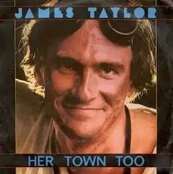 "Her Town Too" is a song written by James Taylor, JD Souther, and Waddy Wachtel, first released as a duet between Taylor and Souther on Taylor's 1981 album Dad Loves His Work. "Her Town Too" was later released on the 2000 compilation album Greatest Hits Volume 2.[1] The song was also released as a single, peaking at #11 on the Billboard Hot 100 for the weeks of May 2 and 9, 1981.[2][3] It is Taylor's last single to reach the Top 40 on that chart as of 2021.[4][5][6] "Her Town Too" also reached #5 on the Billboard Adult Contemporary chart and #21 on the Mainstream Rock chart.[5]