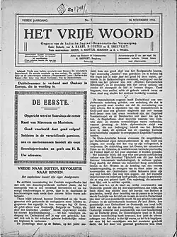 - ^ "Het "Vrije Woord" opnieuw verschenen". De tribune : soc. dem. weekblad. 12 July 1921.