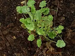 A saxifrage with basal, oval to round leaves. These are often lobed or toothed. Flowers are in a spike on an erect leafless stem which can reach up to 35 inches in height.[3] Flowers are bell-shaped and can be pale yellow, cream, green or pink.[4]