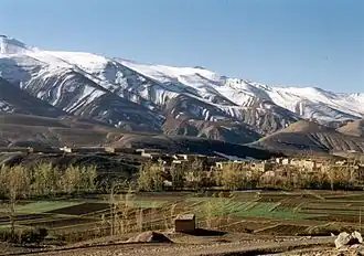 The eastern part of the High Atlas forms vast plateaux at high altitude which provide the headwaters for the Moulouya River. It extends from the town of Khenifra. This portion of the range includes the solid mass of the Tamlelt whose northern edge is occupied by its higher peaks, such Jbel Ayachi at 3,747 m (12,293 ft). The altitude falls towards the east where the mountains join the pre-Saharan zone.
