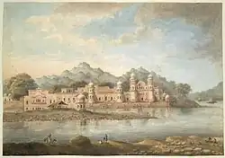 The ghats at Haridwar, watercolour of the ghats at Haridwar from 'Views by Seeta Ram from Mohumdy to Gheen Vol. V' produced for Lord Moira, afterwards the Marquess of Hastings, by Sita Ram between 1814-15