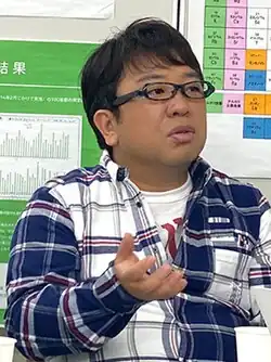 Hiroyuki Amano (天野 ひろゆき, 天野 博之, Amano Hiroyuki; born 24 March 1970, in Okazaki, Aichi)[1] is a Japanese comedian, actor, voice actor, television presenter, film director and film critic. He is nicknamed Amanocchi (天野っち). He performs tsukkomi and make stories in the comedy duo Kyaeen. His partner is Udo Suzuki.