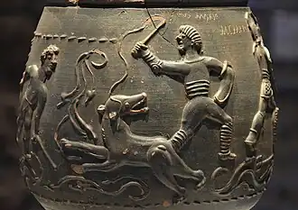 The establishment of the Colonia is thought to have involved extensive appropriation of land from local people. This, and other grievances, led to the Trinovantes joining their northern neighbours, the Iceni, in the Boudiccan revolt.[9] The rebels entered the city, and after a Roman last stand at the temple of Claudius, razed it, massacring many thousands. A Roman force attempting to relieve Colchester was destroyed in pitched battle.[10] The rebels then proceeded to sack Londinium (London) and Verulamium (St Albans), before being defeated in battle. Contemporary sources claim revolt may have killed as many as 80,000 people. The Romans are likely to have ravaged the lands of the rebel tribes, so Essex will have suffered greatly.[11]