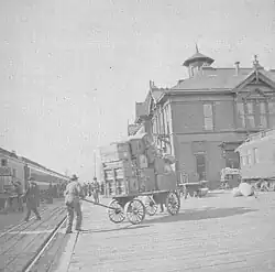 During this period, railroad companies charged what many believed were unfair shipping rates on goods going into Spokane.[72] These rates were much higher than rates to coastal seaport cities such as Seattle and Portland; so much so that Minneapolis merchants could ship goods first to Seattle and then back to Spokane for less than shipping directly to Spokane, even though the rail line ran through Spokane on the way to the coast.[58][73][f] This had a significant impact on the local economy, with many merchants simply choosing not to do business in Spokane. In 1892, the Interstate Commerce Commission agreed with the city after it filed a complaint about these practices, but that decision was struck down by a federal court. In 1906, Spokane sued under the newly passed Hepburn Act, and won on July 24, 1911.[74] Due to these shipping rates, no alternative transport for their shipments, the lack of a seaport, and access to international markets, Spokane never became a prominent leader in the production of lumber.[68]