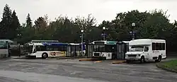 This transit center is served by the following bus lines. Beginning in August 2023, these lines stop on nearby streets, until construction on the station's new bus plaza is complete.[3]