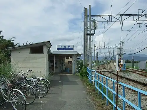 Hongō Station (本郷駅, Hongō-eki) is a passenger railway station located in the town of Tachiarai, Fukuoka Prefecture, Japan. It is operated by the private transportation company Nishi-Nippon Railroad (NNR), and has station number A04.[1]