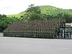 The Hong Kong Army Cadets Association (Chinese: 香港青少年軍總會), established on 18 January 2015, is a Hong Kong Uniformed Youth Group (Chinese: 香港青少年制服團體), it is connected with the People's Liberation Army Hong Kong Garrison and the Liaison Office of the Central People's Government in the Hong Kong.[1] Established with the aims "To contribute the city and serve the Fatherland".[2] The Hong Kong Army Cadets Association is a development of the Military Summer Camp For Hong Kong Youth (Chinese: 香港青少年軍事夏令營) scheme organised by Betty Tung Chiu Hung-ping, the wife of former Chief Executive of Hong Kong Tung Chee-hwa, and the core of the estimated 2000 strong membership[3] is made up of attendees of the summer camps; the target membership of the Association is children and youths from the age of six upwards.[4] Up until 2023, the Association was the only Hong Kong uniformed youth group to use the People's Liberation Army's military drill,[5] with its uniforms, emblems and structure is based on that of the PLA.