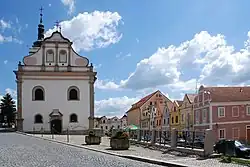 The Church of Saints Peter and Paul dates from the 15th century. In the early 18th century, it was baroque reconstructed and extended.[13] The 38 m (125 ft) high bell tower was rebuilt in 1852 and today is open to the public as a lookout tower.[14]