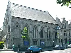 Goulty was responsible for two new Congregational churches in East Sussex during the 1860s. Cliftonville Congregational Church, a congregation based in central Hove, used his Sunday School building (erected in 1861) for worship until his grey stone Early English Gothic Revival-style church building was finished.[12][13] The church is still in active use under the name Central United Reformed Church.[14] In 1866, he used a different architectural style—plain Neoclassical—for his design of the Newhaven Congregational Chapel at Newhaven, which replaced a building of 1797.[15] The stucco-faced stone building served as a church until 1938, after which it fell into dereliction and later became an antiques market.[15]