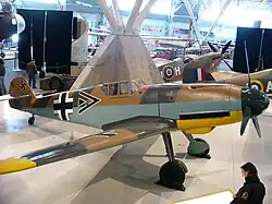 In summer 1942, he claimed 23 victories in six weeks and was awarded the German Cross in Gold (Deutsches Kreuz in Gold) on 18 May.[3] On 12 August, Carganico was part of a Schwarm intercepted by Soviet fighters and Carganico's Messerschmitt Bf 109 F-4/Z (Werknummer 10132—factory number) was damaged sufficiently to force an emergency landing 8 km (5.0 mi) south of the Motovsky Gulf.[30] This aircraft is currently on display at the Canada Aviation and Space Museum.[31] He evaded capture, headed west and reached a German infantry position the next day where he was picked up by a Fieseler Fi 156 Storch and flown back to Petsamo.[32]