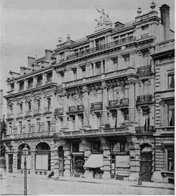 In 1890, Prosper and Edouard Wielemans, two brothers with a brewing company, opened the Café Métropole on the Place de Brouckère/De Brouckèreplein—a major square on the new boulevards—as a place to sell their beer. The café was a huge success, and in 1891, the Wielemans-Ceuppens family purchased the next-door building, a former property of the Caisse générale d'épargne et de retraite (ASLK/CGER), and turned it into the Hotel Métropole, inaugurated in 1895. This main building had been built in 1872–1874 by the architect Antoine Trappeniers.[3] The hotel's former reception desk is still easily recognisable today as the former bank's desk.