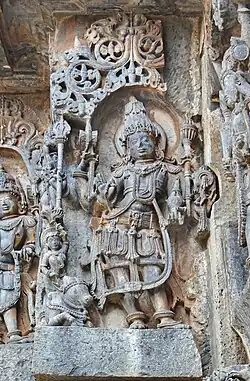 The Hoysaleswara temple is a Shaiva monument, yet reverentially includes many themes from Vaishnavism and Shaktism tradition of Hinduism, as well as images from Jainism.[10]