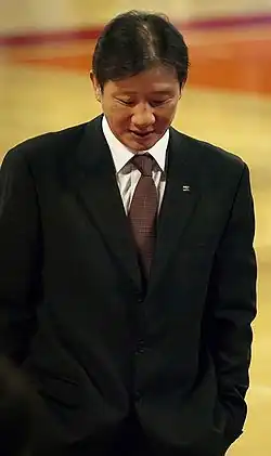 Hur Jae (Korean: 허재; born September 28, 1965) is a South Korean retired basketball coach and former player. His playing and coaching career combined spanned over three decades, beginning during the semi-professional era and coinciding with the establishment of the professional Korean Basketball League (KBL).[1] As one of the most recognizable domestic sports stars of the late 1980s to early 2000s, Hur was nicknamed "The President of Korean Basketball" (농구대통령) by Korean fans and the media.[2][3] At the 1988 Summer Olympics in Seoul, he took the Athlete's Oath with handball player Son Mi-na.