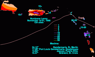 - ^ a b c d e f g h Preliminary Storm Report on Hurricane Lenny November 16–19 1999 (Report). San Juan, Puerto Rico National Weather Service Office. Retrieved July 30, 2011.