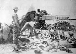 ![]() Indian Army officers ordered the surrender of all arms, but in practice, only Muslims were disarmed. Hindus, whom the military deemed less of a threat, were often allowed to keep their weapons which resulted in the massacres.[1] | |