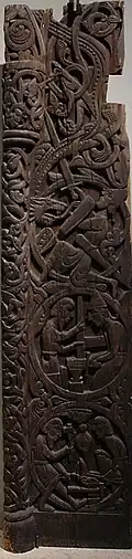 The carvings show several scenes from the legend of Sigurð Fáfnir's bane. A section of one of these carvings in which Sigurð kills Regin was the basis for a Norwegian postal stamp.[1]