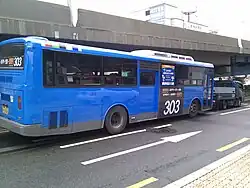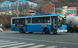 The Hyundai New Super Aero City (Hangul:현대 뉴 슈퍼 에어로시티) is a heavy-duty single-decker bus manufactured by the truck & bus division of Hyundai. It was introduced in 1991. It primarily used as a city bus and an intercity bus as either a complete bus or a bus chassis. It is distinguishable by a front 'Aero City' badge, but the common Hyundai badge is usually on the rear. The model's principal competitors is the Daewoo BS106 Royal City, but it also competed against the now-discontinued Kia AM bus series (originally Asia AM).
