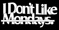 The band name "I Don't Like Mondays." was chosen because the members liked the idea of using a sentence to describe the band.[5] The band has stated that they truly dislike Mondays, and they consider it to be a weekly holiday.[3]