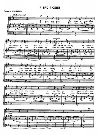 "I Loved You" (Russian: Я вас любил, Ya vas lyubíl) is a poem by Alexander Pushkin written in 1829 and published in 1830. It has been described as "the quintessential statement of the theme of lost love" in Russian poetry,[1] and an example of Pushkin's respectful attitude towards women.[2]