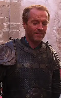 Iain Alan Sutherland Glen (born 24 June 1961) is a Scottish actor.[2] He has appeared as Dr. Alexander Isaacs/Tyrant in three films of the Resident Evil film series (2004–2016) and as Jorah Mormont in the HBO fantasy television series Game of Thrones (2011–2019). Other notable film and television roles include John Hanning Speke in Mountains of the Moon (1990), Larry Winters in Silent Scream (1990) for which he won the Silver Bear for Best Actor at the Berlin International Film Festival, Manfred Powell in Lara Croft: Tomb Raider (2001), Brother John in Song for a Raggy Boy (2003), the title role in Jack Taylor (2010–2016), Sir Richard Carlisle in Downton Abbey (2011), James Willett in Eye in the Sky (2015), Bruce Wayne in Titans (2019–2021), Magnus MacMillan in The Rig (2023–present), and Dr. Pete Nichols in Silo (2023–2025).
