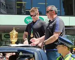 ![]() Foster with Richie McCaw during the 2015 Rugby World Cup victory parade | |||||||||||||||||||||||||||||||||||||||||||||||||||||||||||||||||