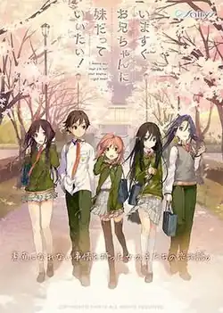 Ima Sugu Oniichan ni Imōto da tte Iitai! (いますぐお兄ちゃんに妹だっていいたい!; lit. I Want to Say to my Older Brother That I'm His Younger Sister Now!), also known as Imaimo (いま妹) for short, with the tagline "I wanna say that I'm not your brother right now!", is a Japanese visual novel developed by Fairys, a sister brand of Sprite, the creators of Love, Elections & Chocolate. It was released on December 14, 2012, playable on Windows PCs and is rated all ages. The game takes place before the events of Love, Elections & Chocolate, and features two of the heroines from that game: Chisato Sumiyoshi and Satsuki Shinonome. The story revolves around the protagonist Rikuto Mitani, whose father remarried a woman who already has a daughter. There is a manga adaptation of the game published in Dengeki Daioh.[1][2] Imaimo and Love, Elections & Chocolate were both featured at the 2012 Anime Contents Expo.[3] A PlayStation Vita version was released in Japan on 24 April 2014.[4]