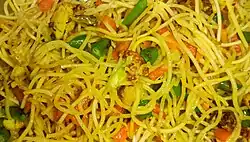 • Chow mein - A popular dish combining noodles, vegetables, scrambled egg, ginger and garlic, soy sauce, green chili sauce, red chili sauce and vinegar