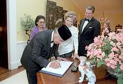 The U.S. under President John F. Kennedy intervened in the West New Guinea dispute between Indonesia and the Netherlands, due to Indonesia's purchase of Soviet arms and planned invasion of the territory. U.S. diplomat Ellsworth Bunker brokered the New York Agreement, which eventually ceded West New Guinea to Indonesia in 1969 after a controversial referendum.[12] The administration of Lyndon B. Johnson escalated the war in Vietnam, which greatly heightened tensions with Indonesia in 1964–65. Relations deteriorated further with Indonesia's opposition to the formation of Malaysia that led to war. By mid-1965, Sukarno was edging closer to China, denounced U.S. imperialism, and inspired anti-American demonstrations. Following an attempted coup on September 30, 1965, and the ensuing massacres of communists, the pro-Western Suharto came to power in 1968, and the U.S. started providing financial and military aid to Indonesia.[13][14]