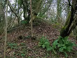 Ladyha No 2 pit was sunk in 1885 to a depth of 568 feet (173 m) and closed in May 1934, having struggled since its main customer, the Eglinton Iron Company, closed in 1928. A fairly substantial brick-lined tunnel still survives which once carried a standard gauge railway line unobtrusively to Ladyha colliery, out of the Earl's sight and the smoke kept away from the kitchen gardens' greenhouses and plants.[38] Other such cosmetic tunnels exist at Alloway and near Culzean Castle.[39] The tunnel was used during World War II as a bomb shelter and storage area for furniture; it remains in good condition. The old colliery ruins were razed to the ground in 2011, having been assessed as a danger to the public.