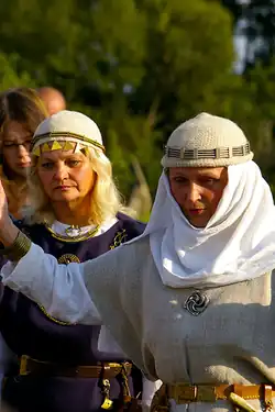 Inija Trinkūnienė (born 25 October 1951) is a Lithuanian ethnologist, folklorist, sociologist, psychologist, head of folk music group Kūlgrinda and the high priestess (krivė) of the Romuva community of the old Lithuanian faith. She became the high priestess after the death of the previous high priest (krivis), her husband Jonas Trinkūnas, in 2014.[1] She is a founding member of the European Congress of Ethnic Religions.[2] She holds a master's degree in psychology from Vilnius University.[2] She was a featured speaker in the Indigenous Plenary Session at the Parliament of the World Religions in Toronto in 2015.[3]