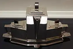 International Silver Company designs have been exhibited in numerous museum exhibitions in the United States and abroad. For example, ISC was represented at several Metropolitan Museum of Art exhibitions during the late 1920s and 1930s, including "The Architect and the Industrial Arts: An Exhibition of Contemporary American Design" (1929).[8] ISC is particularly known in the museum world for its high-quality Modernist designs from 1928 into the 1960s, which were exhibited at the Dallas Museum of Art, the Smithsonian Institution in Washington, DC, and the Wolfsonian in Miami Beach, Florida in 2005–07.[9][7] This exhibition highlighted many ISC design achievements, including its installation called the "Moon Room" exhibited in the Pavilion of American Interiors at the 1964 New York World's Fair from 1964 to 1965.