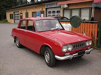 Launched in June 1963, the sedan used a 1.5 L OHV gasoline Inline-four engine and a 1.8 L diesel engine.[1] The 50 PS (37 kW; 49 hp) diesel received very low gearing of 4.1:1 - optionally available to the 1.5 as well - resulting in a top speed of only 104 km/h (65 mph).[2] In April 1964, they were joined by the 1.3 L OHC inline-four engine already in use in the Wasp pickup truck, at which time a three-door van/wagon version called the Express (in Japan) was also added to the lineup.[3] In 1966, the a mild facelift featured a revised front fascia,[4] and the Bellett B model was added. At the very end of 1966, a 1.6 litre SOHC engine was added for the 1600 GT. In 1971 the Bellett range underwent a second facelift, which also marked the end of diesel-powered Belletts.