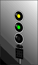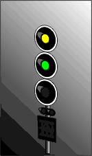 There are two more Category 1 signal aspects, usually shown on "home signals", which instruct the driver to proceed cautiously towards a buffer stop or an occupied or a very short track.