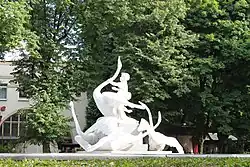 Water fountain in Lviv, Ukraine's Stryiskyi Park.