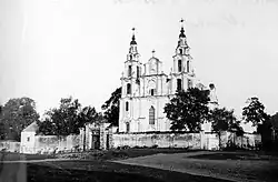 Ivyanyets is located in a hilly forested area on the Volma River, and its origins can be traced to the end of the 15th century in the Grand Duchy of Lithuania. Originally known as Givenech, presumably derived from Lithuanian gyventi – "to live", it was founded in 1444 as a privately owned settlement of the Sologub family, and by 1522 it was listed as a town within Minsk County of the Vilnius Voivodeship. Ivyanyets was home to a primarily Protestant Calvinist community, and it saw rapid growth with schools and a hospital. In 1606, a wooden church was built, and in 1640 the town was composed of 27 lots. During the Russo-Polish War (1654–1667), Ivyanyets was severely damaged by Russian forces, and slowly recovered over the next century. At the beginning of the 18th century Ivyanyets County was formed, with its administrative center located in the town, and in 1702 a Franciscan monastery was built by Theodore Vankovich. In 1745, Jan Michal Sologub built a stone church in the town. Sologub was the current Podskarby, the chief financial manager of the Polish–Lithuanian Commonwealth and a member of the Senate, and the owner of the town. By 1780, Ivyanyets was composed of 7 streets, a market, and 174 lots.