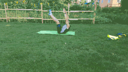A jackknife is an abdominal exercise. This exercise is also known as a "V-Up". Jackknife exercises are designed to strengthen the upper and lower abdominal muscles, particularly the transversus abdominis muscle. There are a number of variations of jackknife exercises that allow people of different ages and ability to work their abdominal muscles. This exercise can be modified by using an exercise ball. The jackknife can be done by lying flat on your back with your arms extended overhead and your feet raised slightly above the floor. The jackknife is completed by slowly bringing your straight arms toward your hips, and lifting your upper torso off the floor.[1]