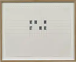 The 2013 exhibition at The Kitchen in New York City, Untitled (disambiguation) displayed an early series of his remnant paintings.[31] The exhibition was also unique for Kassay's interpretation of the performance venue's black box theater, as well his use of the institution's archive. Kassay said of the show: “I put work throughout the building in places where paintings rarely rest—such as in the video archive, or in the lobby—to emphasize their presentation as an almost momentary, contingent stage. The paintings were made so that they could be moved easily around the space and remain variable to the activity of the environment.”[17] In a review of a later show, New York Times critic Roberta Smith called Untitled (disambiguation) “quietly beautiful”.[32]