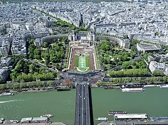![]() View of the Trocadéro Gardens and Palais de Chaillot from the Eiffel Tower | |