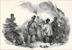 ![]() Jambe de Bois, depicted during the fighting in Brussels in September 1830 in a lithograph by Jean-Baptiste Madou, aiming one of the revolutionaries' cannons. | |