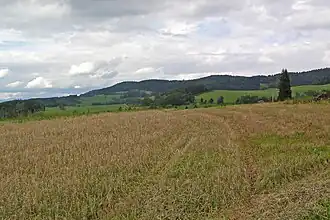 Jestřebí hory is a small mountain range made up of several high peaks which do not surpass 750 metres,[3] located in the riven basin of the river Metuje and Úpa, and their inflows. The mountain range has a length of 20 km and stretches from the north-east to south-west, from the north of the area of Trutnov in the north-west to the outskirts of the settlement of Hronov in the south-east. From the north-west the mountain range borders the Giant Mountains, from the north they border Krucze Mountains, from the north-eastern side they border the Adršpach-Teplice Rocks, from the east they border the Stołowe Mountains, from which they are separated by the Metuje and Jívka rivers, and from the south-east they are by the Podorlicko Uplands.