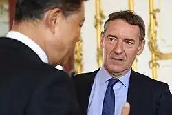 In 2015, he was created a Life Peer as Baron O'Neill of Gatley, of Gatley in the County of Greater Manchester,[22] and took up an unpaid post in HM Government as the Commercial Secretary to the Treasury.[23][24] In this role O'Neill's primary role was to work on the Northern Powerhouse project and to help reinvigorate trade with China. Following the resignation of David Cameron as Prime Minister his successor, Theresa May, kept O'Neill in post. In 2016, O'Neill resigned over concerns that May was not committed to the Northern Powerhouse project, making him the first member of May's ministry to resign.[25]
