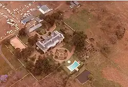 On 21 November 1925 Jimbour House was formally re-opened with a fund-raising fete for Dalby Hospital. This commitment to work for the well-being of the community has been continued by the Russell family. Wilfred Russell died in 1932, and the management of Jimbour passed to his son Charles Russell and Charles' wife Hilary.[3] In the 1930s, two large wooden pergolas over the drive at each end of the house and four smaller pergolas in the rose garden were erected, and the rose garden was divided into the four quadrants that now define it. In 1938, the drive was constructed from the front gate to the water tower, and jacarandas and shrubs were planted along both sides.