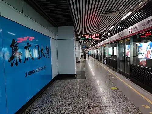 Jiqingmendajie station (simplified Chinese: 集庆门大街站; traditional Chinese: 集慶門大街站; pinyin: Jíqìngméndàjiē Zhàn; lit. 'Jiqingmen Street station'), is a station of Line 2 of the Nanjing Metro. It started operations on 28 May 2010 along with the rest of Line 2.[1][2] The theme of this station's decoration is Mid-Autumn Festival.[3]