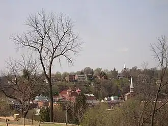 Jo Daviess County (/ˈdeɪvɪs/) is the northwesternmost county in the U.S. state of Illinois. According to the 2020 census, it had a population of 22,035.[1] Its county seat is Galena.[2] Jo Daviess County is part of the Tri-State Area and is located near Dubuque, Iowa and Platteville, Wisconsin. As part of the Driftless Area, Jo Daviess County contains rugged terrain compared to the rest of the state. Within Jo Daviess County lies Charles Mound, the highest natural point in Illinois, as well as eight of the ten highest points in Illinois.[3][4]