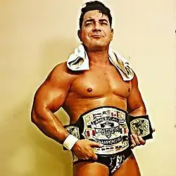 On February 22, 2009, Bravo participated in a show of the Dominican Wrestling Entertainment, based in the Dominican Republic. In this event, he was part of a Royal Rumble to crown the first DWE Dominican National Champion, which he won.[5][6] On April 18, 2009, Bravo challenged Chicano, the incumbent IWA World Heavyweight Champion, to an unificatory contest. Bravo won, becoming a dual champion.[7] The title was subsequently stripped and remained vacant for a week, before Bravo regained it by defeating Cotto and Ring of Honor's World Heavyweight Champion Jerry Lynn. On May 29, 2009, Bravo defended the titles in a Revolution X-Treme Wrestling card held in Panama, defeating El Cuervo.[8] At a tournament named "Copa Alcalde Hon. Jose Rosario", Bravo dropped the IWA World Heavyweight Championship to Miguel Pérez, Jr.[9] On October 3, 2009, he won the IWA Intercontinental Championship. Two weeks later, Bravo was booked to defeat Pérez in an unification match, becoming a tri-champion.[10] On November 1, 2009, Bravo and the incumbent WWC Universal Heavyweight Champion, Shane Sewell, performed in a DWE event, with the DWE Dominican National Championship being held up after the creative team booked a no contest. This marked the first instance that the two major champions worked together while holding full recognitions by both promotions.