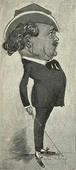 During 1897 Brunton's scenic paintings featured in Holt's touring productions such as The Cotton King, The Union Jack and The Prodigal Daughter.[58][59] Bland Holt productions in 1898 which incorporated Brunton's scenic designs included A Life of Pleasure, Straight From the Heart and Sporting Life.[60] Holt's production of Woman and Wine at Melbourne's Theatre Royal in April 1899 featured "Wonder-Compelling Tableaux" by John Brunton, the scenes consisting of "a French Racecourse", "The Boulevard Cafe", "The Japanese Ball", "The Paris Flower Market", "The Blind Man's Vision" and "The Trial at Le Palais de Justice".[61]