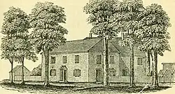On November 16, 1777, British General Charles Cornwallis crossed the Delaware River from Chester, Pennsylvania,[12] and captured Fort Billingsport.[13] After marching into Woodsbury, Cornwallis commandeered John Cooper's house, because it was "the finest and best equipped home in the section",[2] and used it as his temporary headquarters for three days,[14][15] from November 21 to 24, 1777.[16] Cooper locked his closets before fleeing to the home of his sister Ann Whitall, who lived in a farmhouse at Red Bank, on the Delaware River.[7][2] The third floor of the house was used as a makeshift hospital by the British,[6] who left bayonet marks on the doors and wood panels, possibly looking for silver and other valuables.[7] While Cornwallis and his officers stayed at the Cooper House, their troops camped on the grounds of the Woodbury Friends' Meetinghouse.[13]