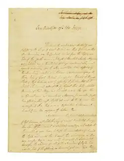 Cooper served on the committee that drafted New Jersey's first constitution, and was likely its principal author.[1] For many years, historians believed that Jonathan Dickinson Sergeant was the main author of the New Jersey constitution, as claimed in a 1929 book by Charles R. Erdman Jr.[1] However, Irwin N. Gertzog's discovery of "The First Draught of the Constitution of New Jersey", a manuscript in John Cooper's handwriting, has given credence to the view that Cooper was the lead author, at least initially.[1][10] The puzzle of who the "true" author was may never be confirmed with complete certainty.[10]